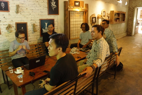 The total number of participants involved is 6 people, assuming that when the participants are few then the class will be more conducive and intense, so that the material given will be more freely discussed. The speakers who fill this activity are among others; Benny Wicaksono (Curator of Jakarta Bienalle 2015), Leonhard Bartolomeus (Curator of GURY Gallery), Dwiki Nugroho Mukti (Curator / SANDIOLO Space), Ignatius Suluh (Artist), Halim Bahriz (Art Writer), RZ Hakim (Founder Kalisat Tempo Doeloe), and Rifandi Septiawan Nugroho (Architect).