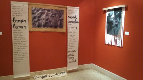 Because it is the title of photography exhibition, in my meet many photographs, there is also poetry, there is also painting and installation. The combination of several types of work makes the House of Sampoerna room full. The works are arranged in each room continuously between each other, so it looks like a space installation.